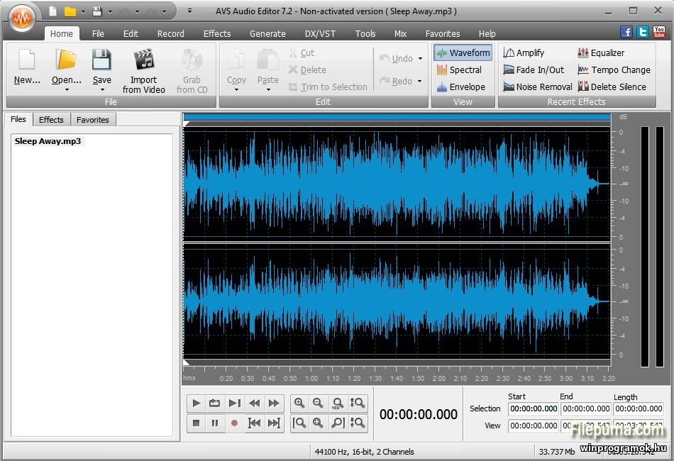 | Effektusok | Normalize, Equalizer, Fade In/Out, Pitch Shift, Reverse |